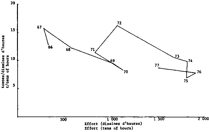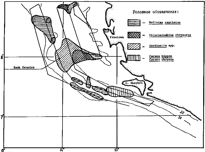 Ainsi, la composition de taille des prises des espèces par décade peut varier de façon considérable (Trachurus trecae) ou assez faiblement (Sardinella aurita et Sardinella eba, Trachurus trachurus) et pratiquement pas (Sardinella pilchardus). Les variations dépendent de l'homogénéité des bancs que forment les populations des espèces indiquées dans le secteur étudie. L'analyse de chaque banc représente un intérêt particulier pour suivre la composition de longueur des espèces pélagiques de ce secteur.