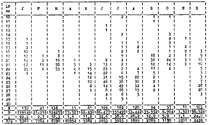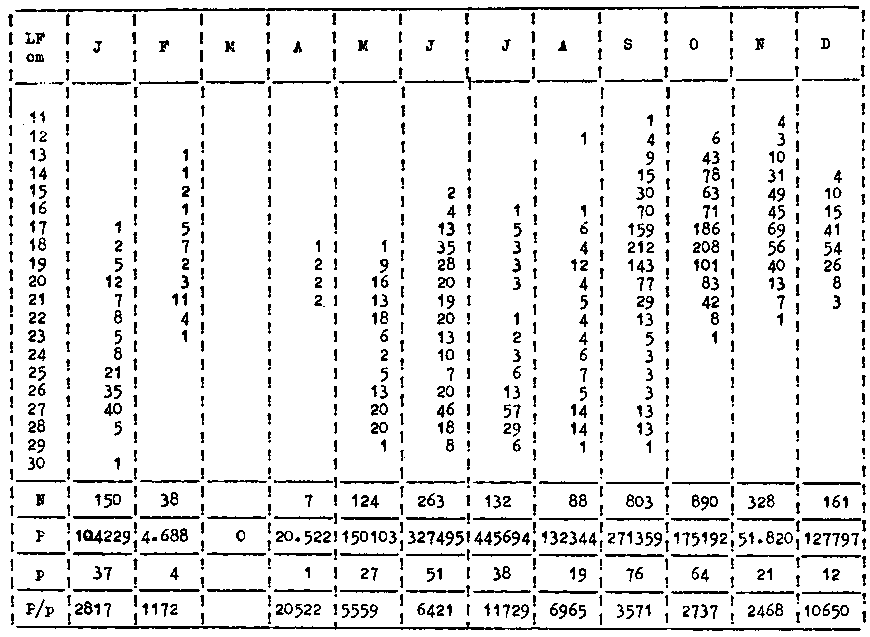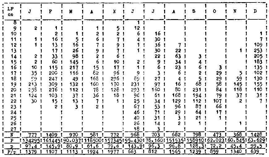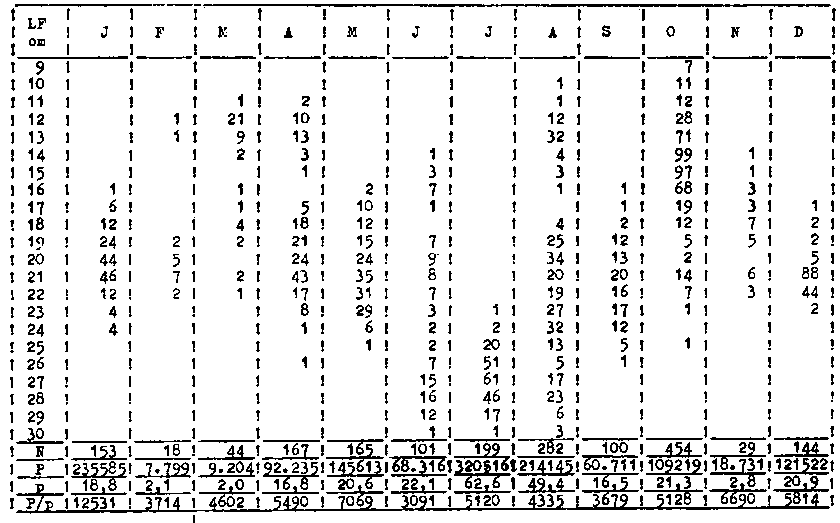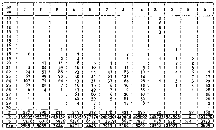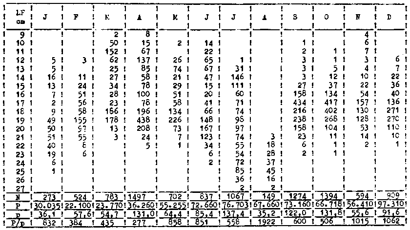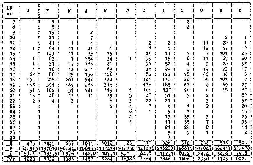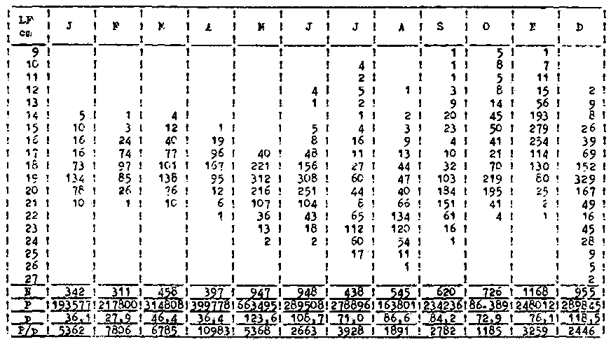 N = number of fish measured each monthSources:P = monthly landings in tonnes, by the boats of the major industrialized company, where sampling took place