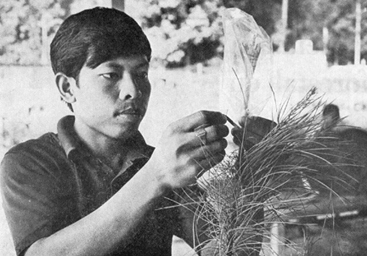 Se induce a los jóvenes científicos a pensar que la investigación requiere un equipo complejo del que raras veces disponen cuando regresan a sus respectivos países. En el peor de los casos esquivan los proyectos aplicados de vasto alcance y suponen que no vale la pena hacer investigación si no disponen de un laboratorio bien equipado y de una estación experimental. |