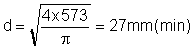 Stress = Force / area required = (4.3 x 103 ) / 7.5 = 573mm²