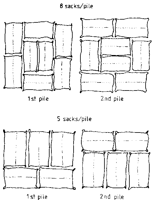 For larger quantities a special building is recommended Figure 9.25 shows a small block-built bag store (20mē) with the capacity of about 15 tonnes of cereals.