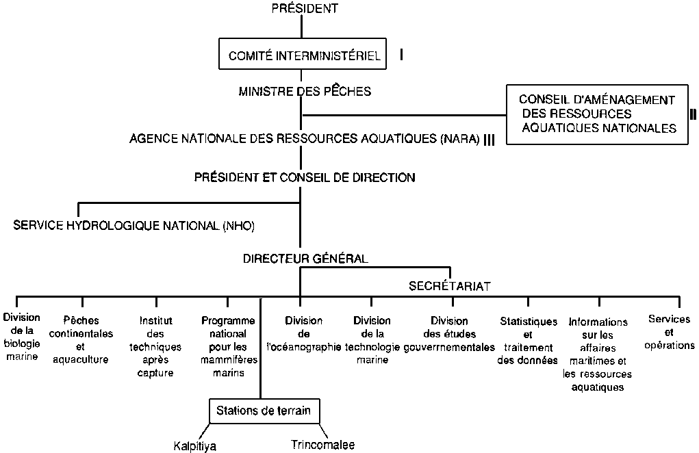 13 Les informations concernant Sri Lanka sont extraites d'une étude préparée par M. Hiran Jayawardene, Président de la NARA, pour un groupe d'experts sur les aspects institutionnels du développement des ressources marines. Document des Nations Unies: ST/ESA/144, juillet 1984.