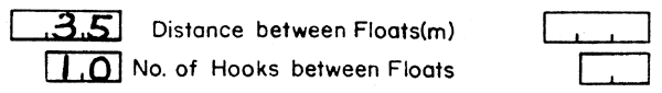 17.   Record the distance between floats on the mainline in metres and the number of hooks between the floats.