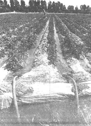 Irrigation water flows from the field channel into the furrows by opening up the bank of the channel, or by means of siphons or spiles (see Annex 1).
