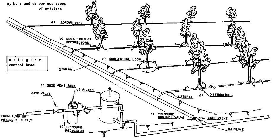 A typical drip irrigation system is shown in Figure 61 and consists of the following components: