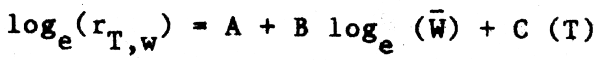 1 Esta ecuación sugiere que la temperatura es más importante que el peso del cuerpo para determinar el valor de M lo cual concuerda con nuestros resultados. Lo que no está tan claro en esta ecuación es cuáles podrían ser los efectos sobre la M de las presas al darse cambios en la abundancia del depredador