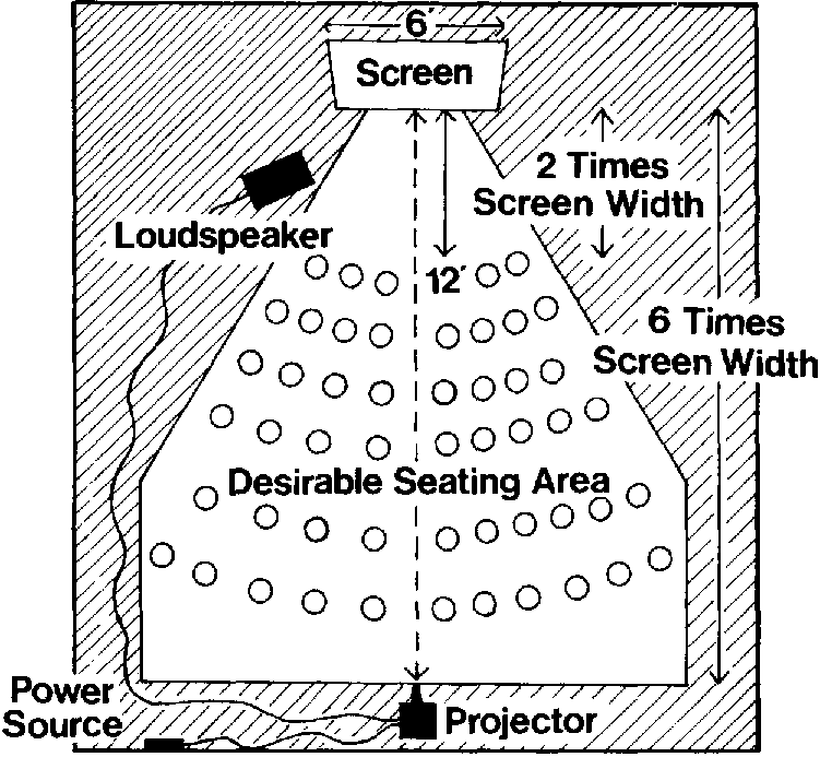 Films come in two formats: 16 mm and 8 mm. Most cinema and educational films are in the larger 16-mm format. Equipment and production costs for 8-mm films are much lower, but because the picture quality is not quite so good and the projected picture size is relatively small, 8 mm has until recently been regarded as suitable for amateur domestic use only. As equipment improves, however, more organizations are producing training and educational films in 8-mm format. An 8-mm film cannot be shown on a projector made for 16-mm films or vice versa. Whichever format of film is to be used, it is necessary to have a projector; a screen or a white wall on which to project the film; a loudspeaker for the film's soundtrack (unless it has no soundtrack, in which case the extension agent may need a microphone, amplifier and loudspeaker so that he can give his own commentary); and a power source, which will either be mains electricity or a generator. If a generator is used, it should be as far away as possible from the projector and the audience so that its noise does not distract them from the film.