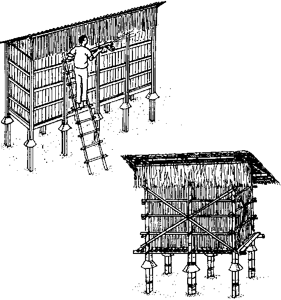 5.6.2 Cribs améliorés. Bien aérés, ils permettent la récolte de produits à forte teneur en eau. (Une récolte précoce réduit les pertes dans le champ.)