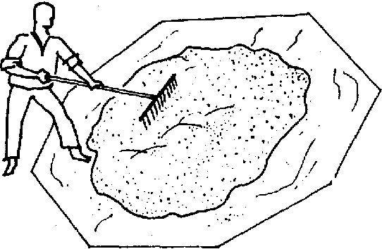 Finalement, la méthode la plus satisfaisante pour éliminer et combattre les insectes dans les sacs de grain est la fumigation. Elle consiste à libérer un gaz parmi les sacs recouverts d'une bâche étanche aux gaz, maintenue contre le sol par des boudins de sable ou par une grosse chaîne gainée de toile d'emballage (fig. 7.10). On garde la pile ainsi bâchée pendant au moins trois jours.