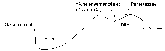 Figure 6 3 Section transversale d'un sillon, d'un billon et d'une niche de plantation.