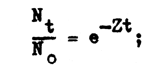 que nos permite calcular el número de peces sobrevivientes (Nt) al final de cualquier perfodo de tiempo (t); conociendo el número inicial de individuos (No), y la tasa instantánea de mortalidad total (Z) correspondiente.