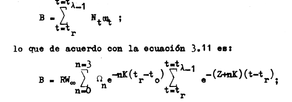 la población en peso o biomasa en el momento φ de cualquier año (ecuación 3.13) se reempla– zará por la expresión :