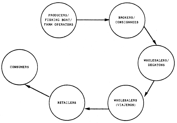 At the Navotas fishing port complex, five market levels can be identified: producer-broker; broker-wholesaler/degaton; degaton-wholesaler/viajero; wholesaler/viajero-retailer; and retailer-consumer. Each level constitutes an independent market.