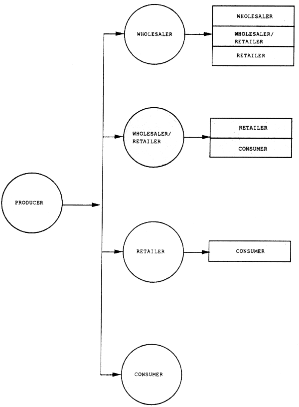 | -->Wholesalers/Viajeros1 | ------------------>Retailers | ------------------>Consumers |