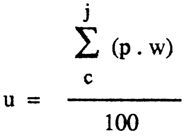 donde u = puntuación del potencial de aprovechamiento de la tierra;