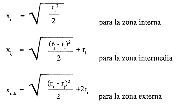 A continuación se aplicó un coeficiente de ponderación para tener en cuenta el hecho de que el abastecimiento de los mercados de la zona interna resultaba más ventajoso que el de los mercados de los otros dos anillos. Aplicando las fórmulas: