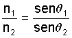 The law that governs the passage of a non-polarized light ray from a medium with a refraction index of N1 to a medium with a refraction index of N2 is the following: