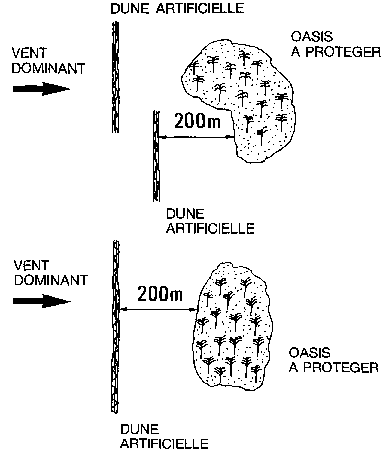 A titre d'exemple, les dimensions moyennes des mailles utilisées sur les dunes présahariennes du Maroc sont uniformément de 10 x 15 m sur les hauts de dunes, 3 x 3 m sur les versants, 4 x 4 m dans les dépressions.