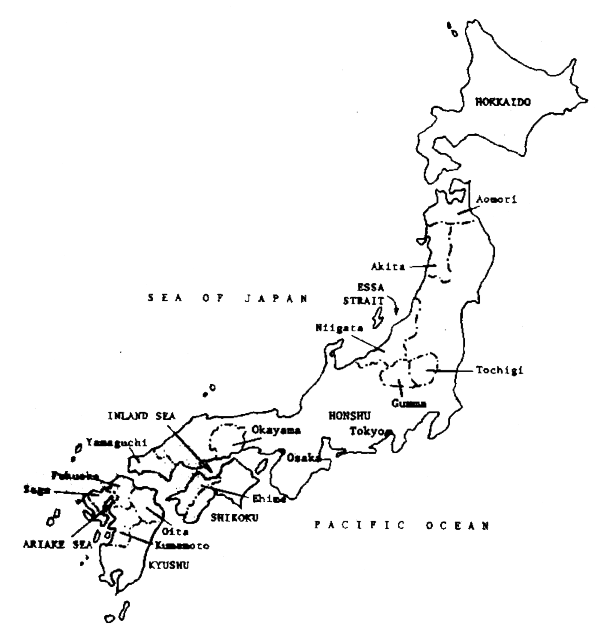 The marine fisheries of Japan are divisible into coastal, offshore and distant water components. These distinct fisheries have never been legally defined, however, since legislation for the fisheries sector has been enacted for all three combined. But through the licensing system they have, in effect, been administered and managed as distinct components. Nevertheless, an operational distinction can be made. The distant water fishery is that which operates beyond the Japanese EEZ and in those of other nations; the offshore fishery, usually employing boats larger than 10 gross tons, operates seawards of the coastal fishery but still within the Japanese EEZ; and the coastal fishery, for the most part using boats of less than 10 gross tons, and which includes mariculture, operates landwards of the offshore fishery. This study is concerned only with the coastal fishery.