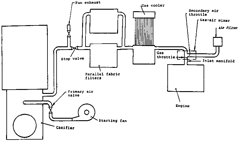 Figure 3.8 Schematic of the gasifier system used for a Massey Ferguson farm tractor