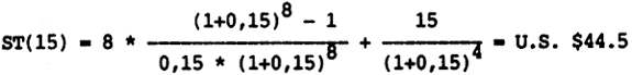 All the annual net benefits are updated to year “O” (i.e., the time at which the investment is made). In other words, the following calculation should be made for each year of the plant's useful life (considering an interest rate of 15% by way of example):