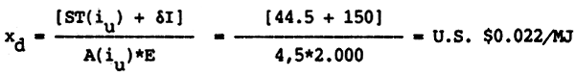 | ECd = Diesel fuel cost/(HPd*μd) | =0.50/(42*0.7) = 0.017 U.S.$/MJ |