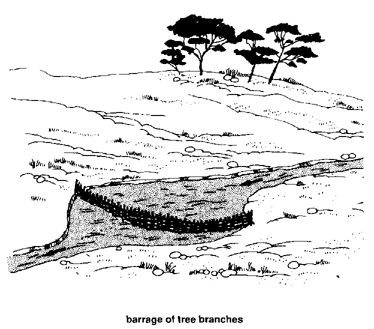 136 You can build a simple barrage using a woven mesh of tree branches like the one shown above. You can also use loose stones or rocks or logs set into the stream bottom.