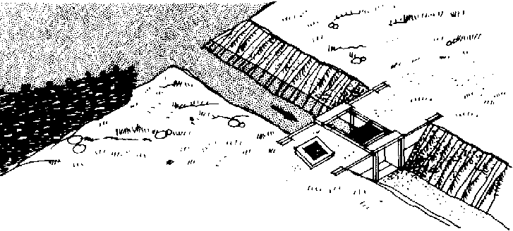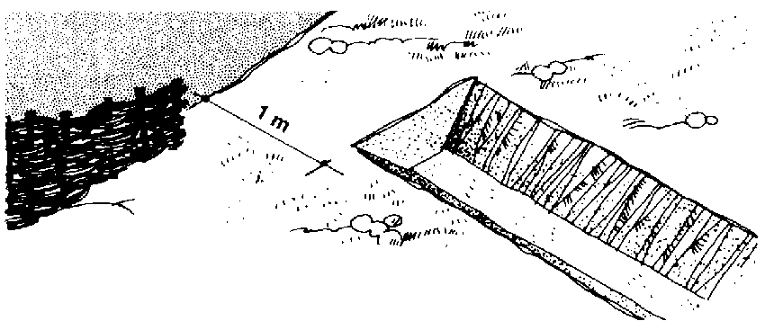 159 Build this sluice at the top of the supply ditch just behind the 1-metre strip of soil that you left at the edge of the water when you began digging the ditch.