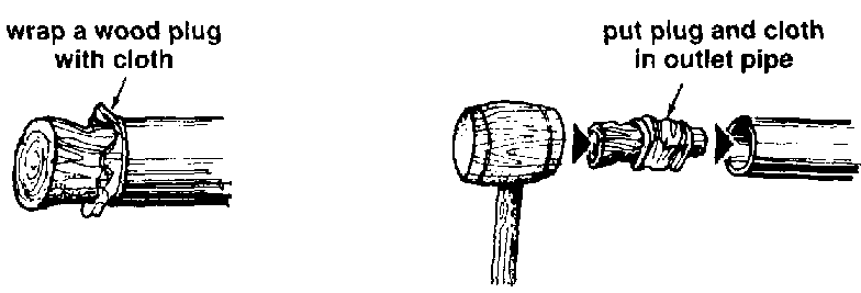192 Make sure that the outlet is tightly closed. To do this, wrap a wood plug with old cloth, put it in the outlet pipe on the outside of the pond and tap it lightly with a hammer so that it will stay in the pipe when the pond fills with water.