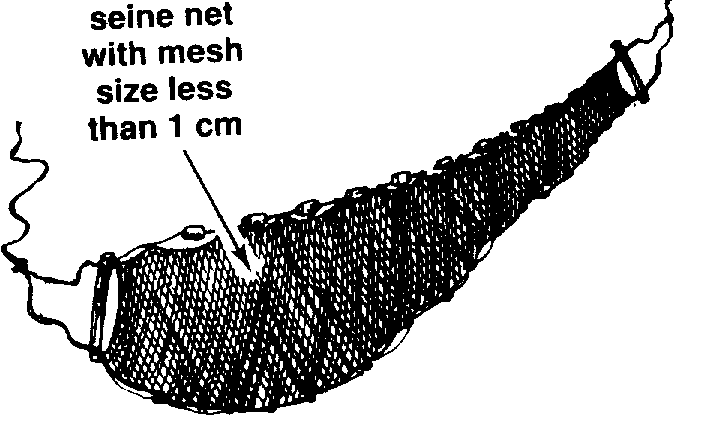 314 A seine net with a mesh of 3 to 3.5 centimetres will catch the biggest fish and allow the small fish to escape through the net.