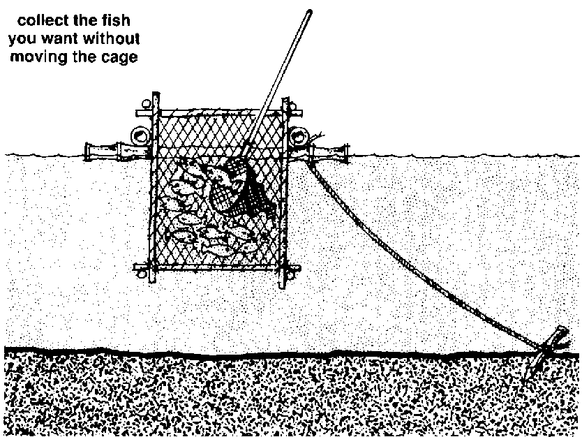 515 If you want to harvest all of your fish and your cage is small enough, pull it into shallow water and begin to collect the fish using a small hand-net.