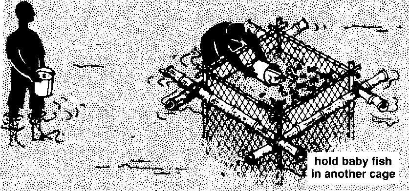 506 A cage can easily be damaged. If this happens you may lose fish. It is very important to check the cage every day to be sure that there are no holes where your fish can get out.