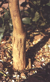 FIGURE 35 Classic severe bark scaling on trifoliate orange rootstock caused by CEV (California)