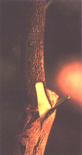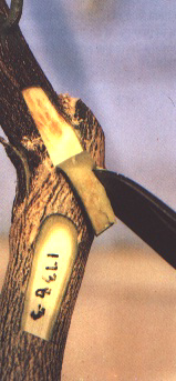 Inoculation. A minimum of two inoculum "buds" are grafted to the lower part of the indicator seedlings. The seedling can be cut back about 20-25 cm above the soil surface at the time of inoculation, or two to three weeks after inoculation at the time inoculum survival is recorded.