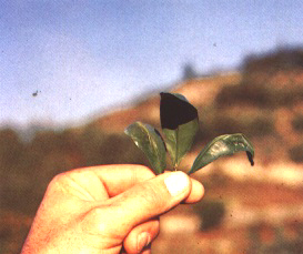 FIGURE 51b A branch from an infected field tree of satsuma mandarin showing typical spoon- or boat-shaped leaves (Japan)