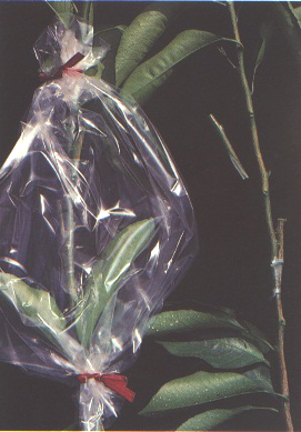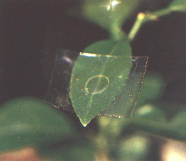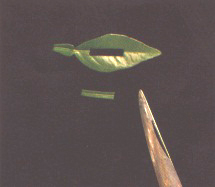 Caution. The brand of adhesive tape selected is extremely important. Some brands are toxic to the leaf. Scotch 600-brand is non-toxic. Whichever local brand is selected, it should be examined for toxicity by making some test grafts on a number of leaves. The tape should not be left in a warm greenhouse but kept refrigerated. Warm temperatures have been shown to induce chemical changes in the tape ingredients and induce toxicity.