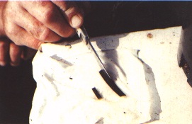FIGURE 136 The bark piece is trimmed on moist tissue paper with the cambium face downward