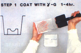 1. Coat ELISA plates (Figure 141) with antibodies (IgG) specific to the antigen to be tested. The IgG concentration should be 1-2 mg/ml in carbonate coating buffer. Incubate for 1-4 h at 25-30°C and wash three times with PBST (Figure 154).