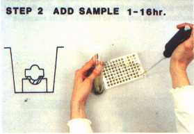 2. Add unlabelled antibody specific to the antigen at an appropriate dilution (normally 1mg/ml or less). Unpurified polyclonal antisera or ascites fluid can be used. Incubate 1-2 h at 30-37°C and wash three times with PBST.