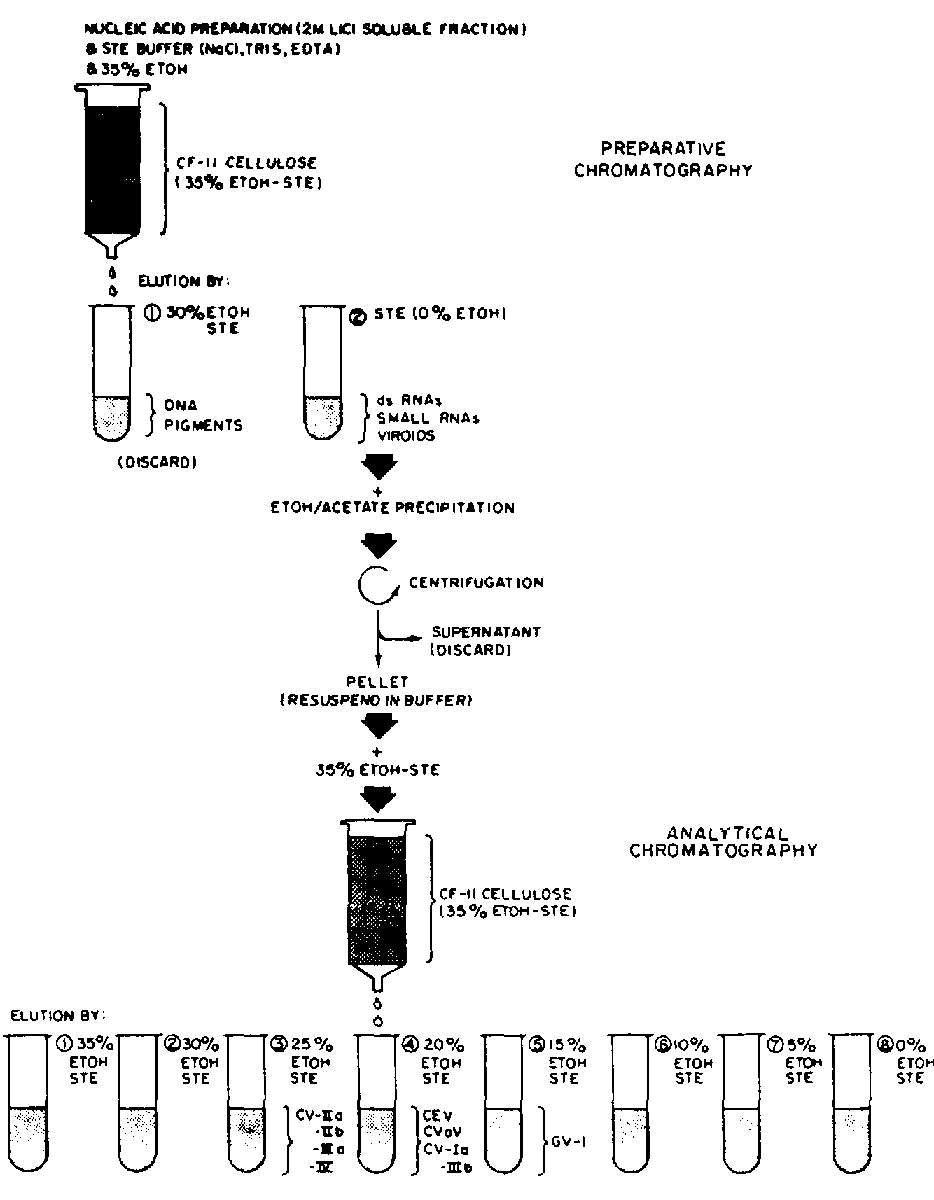 12. Retain supernatant containing LiCl soluble nucleic acids (mainly DNA, 4S and SS RNA, dsRNAs, and viroids). Discard pellet of LiCl insoluble nucleic acids (mainly ribosomal RNA).