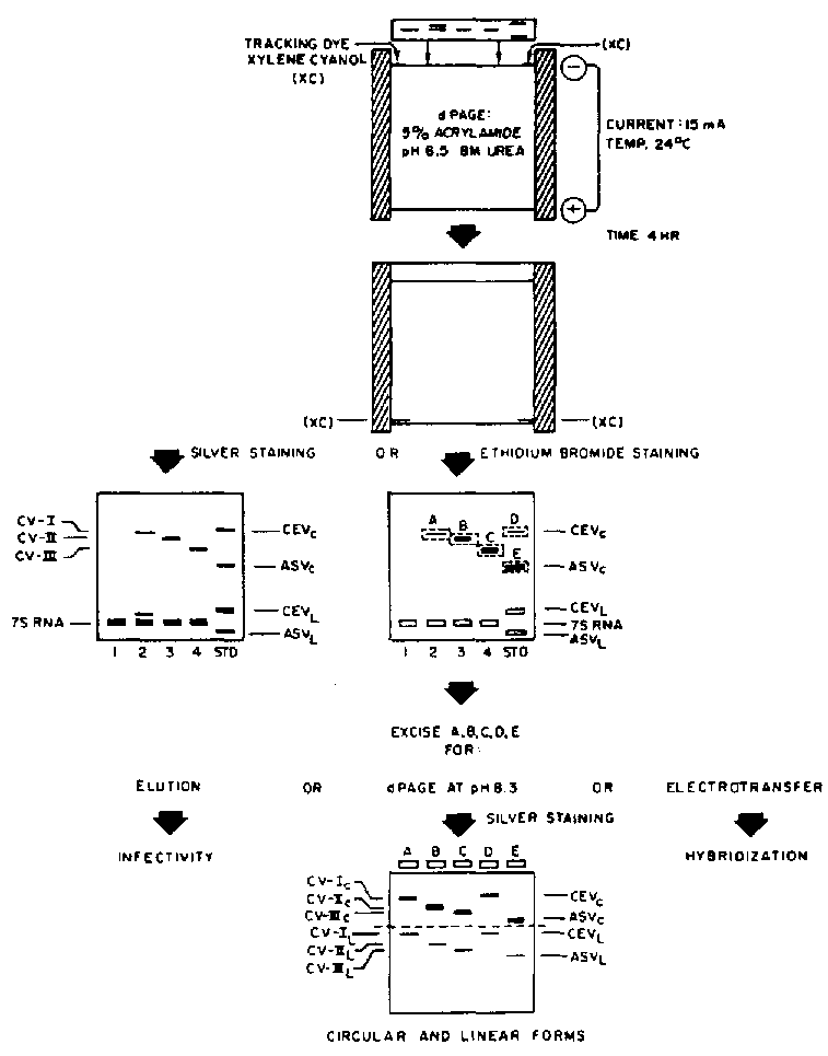 Ultimate success in detecting viroids as discrete bands on polyacrylamide gels is dependent upon the quality of the nucleic acid preparations obtained from infected tissues. High concentrations of phenolic and acidic compounds can seriously interfere with the recovery of all nucleic acid species. Therefore, the composition of the extraction medium must be custom-made to the particular tissue under investigation to assure the consistency of factors such as the maintenance of a pH of about 6.5 to 9.0, the presence of appropriate additives such as polyvinylpyrrolidone to neutralize the effects of polyphenols, and adequate concentration of antioxidants.