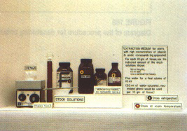 Extracts may be prepared from tissues of different organs of field- or greenhouse-grown plants (leaves, roots, bark, dormant or breaking buds) or vectors (insects, nematodes). Plant tissues (usually 100-200 ma) are ground in a mortar in the presence of carborundum powder or quartz sand and 0.3-0.5 ml of phosphate buffer or, especially with grapevine and stone fruits, one of the above protectants (nicotine, PVP, PEG). When a smooth paste is obtained, 0.3-0.5 ml of buffer are added and the sample is ground again. The slurry is transferred to a centrifuge tube and centrifuged(I 500-2 000 g). The supernatant fluid is collected and used.