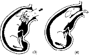 (3) Que salgan las patas anteriores pero no la cabeza.