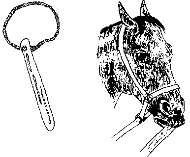 Pase su mano por el lazo y sujete el hocico del animal. Deslice la cuerda por su mano y dando vueltas al torcedor apriete la cuerda en torno del hocico.