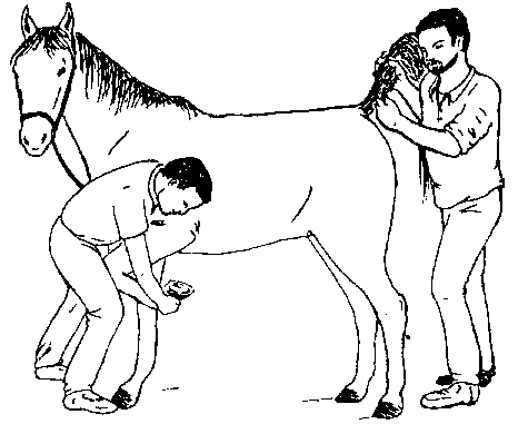 Levantando un miembro al animal se le impide moverse o cocear. Esto facilita su examen, el de sus dientes y la toma de su temperatura. Puede ser necesario sujetar la cabeza del animal. Para sujetarlo por completo se requiere aplicarle el torcedor en el hocico.