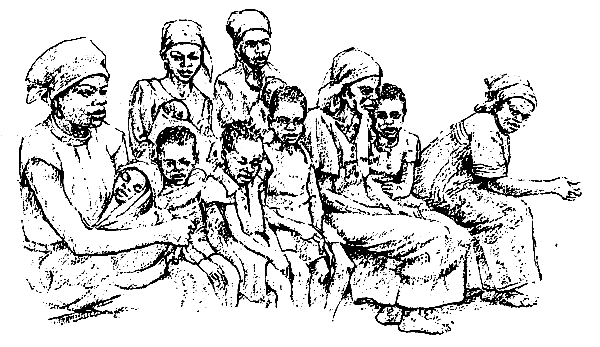 On ne constituera pas nécessairement tous les groupes possibles. S'il y a très peu de femmes sans enfants non alphabétisées, on ne constituera pas de groupe de ce type. En cours d'enquête, on pourra décider de réaliser deux ou trois groupes du même type, compte tenu de la richesse de la discussion. De même on pourra décider de créer un groupe non prévu par le tableau initial : un groupe d'hommes, un groupe de filles-mères,...