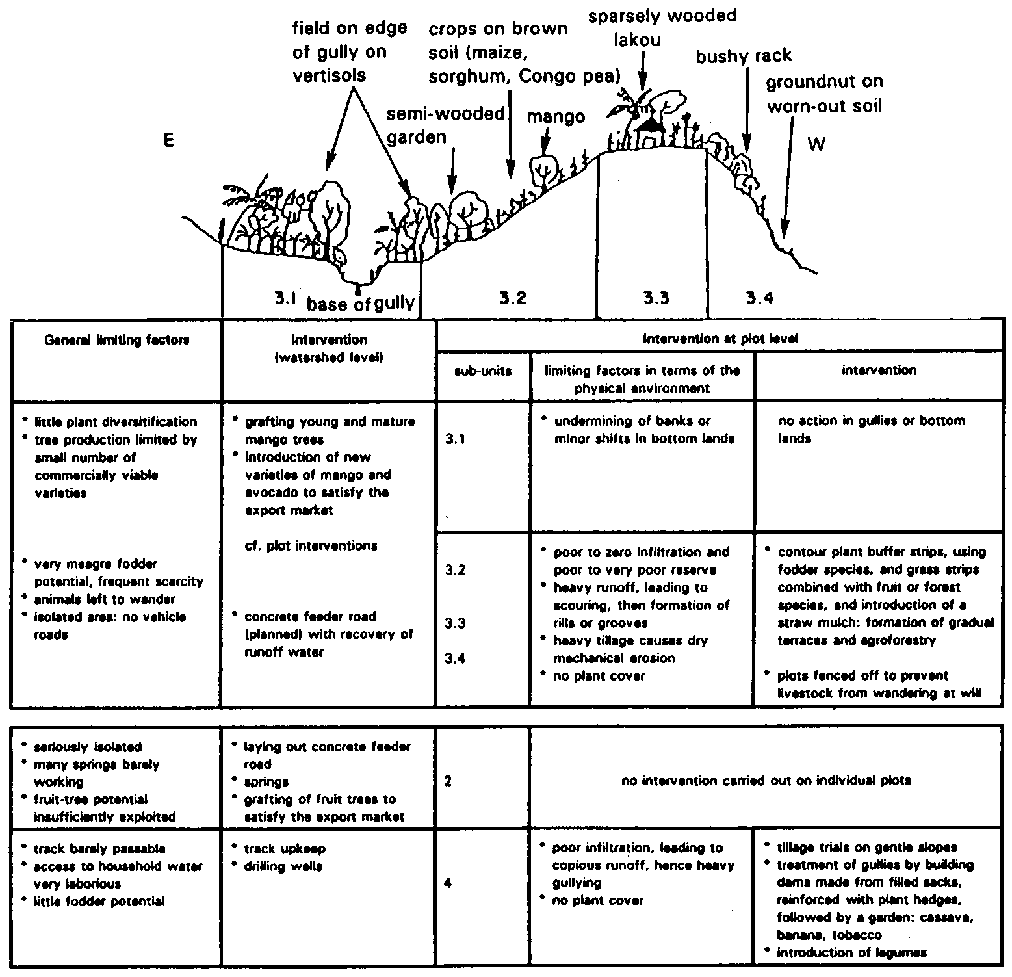 Conclusions. The farmers' traditional techniques for managing water and soil fertility and also their tillage techniques - must be reinforced, in order to improve management of surface water, increase organic (then mineral) inputs, and improve plant cover by encouraging the use of enclosures.