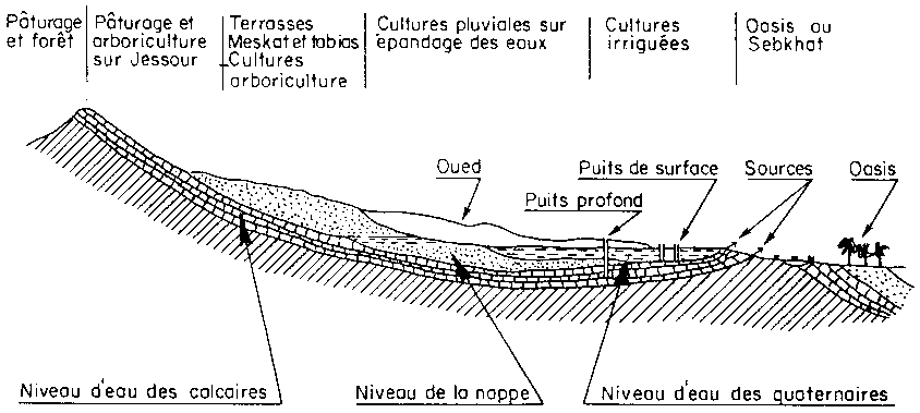 En Tunisie, Gosselin (1939) a étudié l'aménagement de l'espace rural en fonction des facteurs hydrogéologiques (El Amami, 1983).