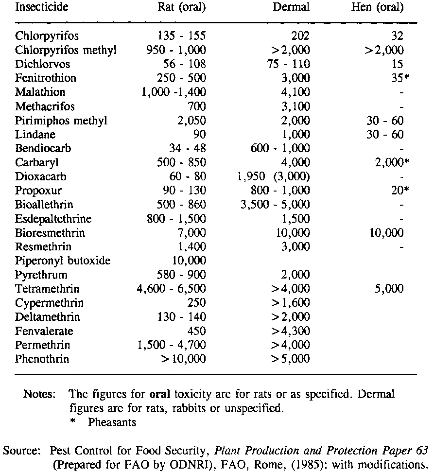Source: Pest Control for Food Security Plant Production and Protection Paper 63 (Prepared for FAO by ODNRI) FAO, Rome (1985).