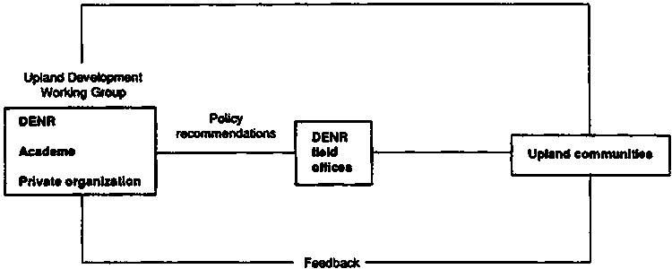 Various units within the DA serve as potential venues for peoples representation. The OD of the Special Concerns Office serves as an institutional development strategy of the DA to promote and institutionalize a DA-NGO-SFO partnership for a better service delivery system. This mechanism will self-destruct as soon as an interphase with appropriate units with the DA (e.g., NAFC and the Agriculture and Fishery Councils [AFCs]), particularly at the provincial level, has been effected.